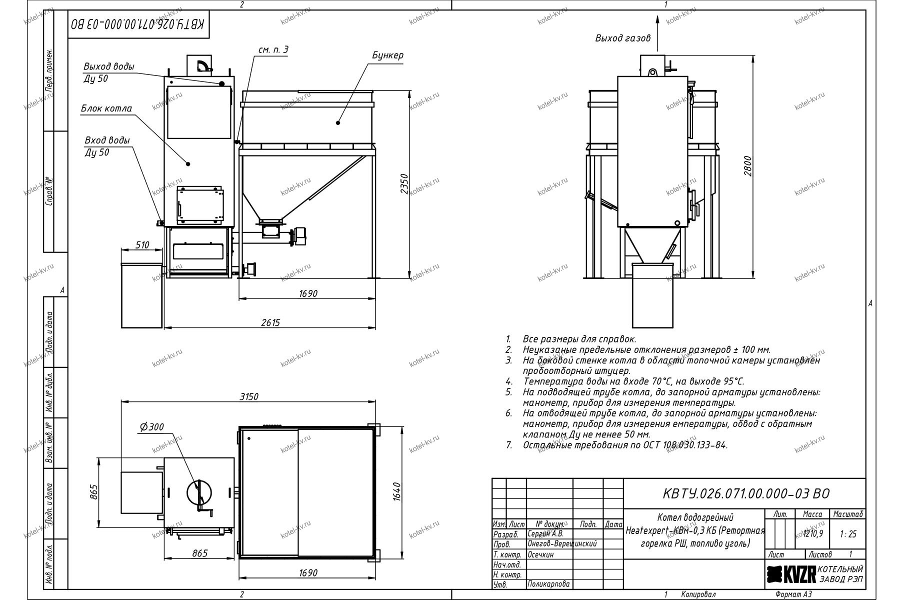 Промышленный водогрейный автоматический котел на угле 300 кВт ( - мощность 0,3 МВт; - топливо уголь; - температура 115 градусов; - отапливаемая площадь* от 2300 до 3300 м2; - отапливаемый объем* от 6900 до 10000 м3 (* диапазон для самого холодного и самого теплого региона РФ)); - применение для отопления производства, жилых зданий, цехов, складов, промышленных предприятий, теплиц, гаражей, больниц, школ, садов, для монтажа в блочно модульных котельных.